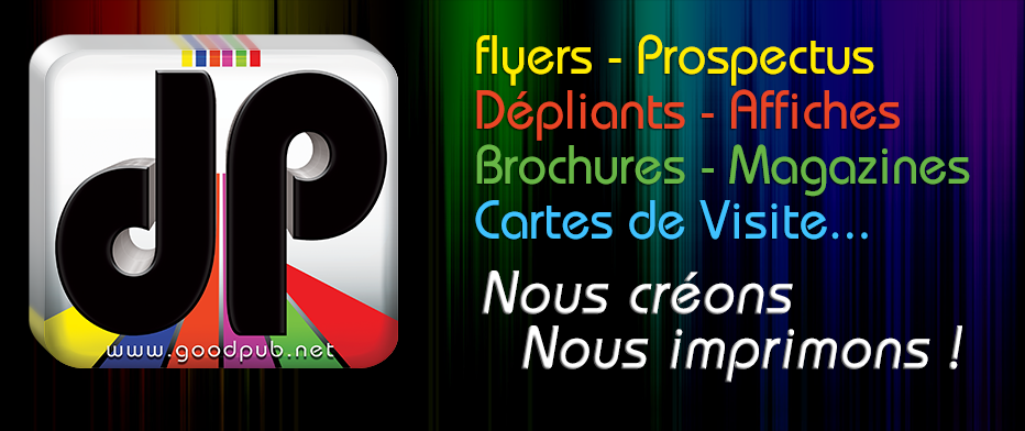 Goodpub c'est aussi de l'infographie, avec la création ou le relookage de votre logo, la création de plaquettes publicitaires, de flyers et même de cartes de visite.